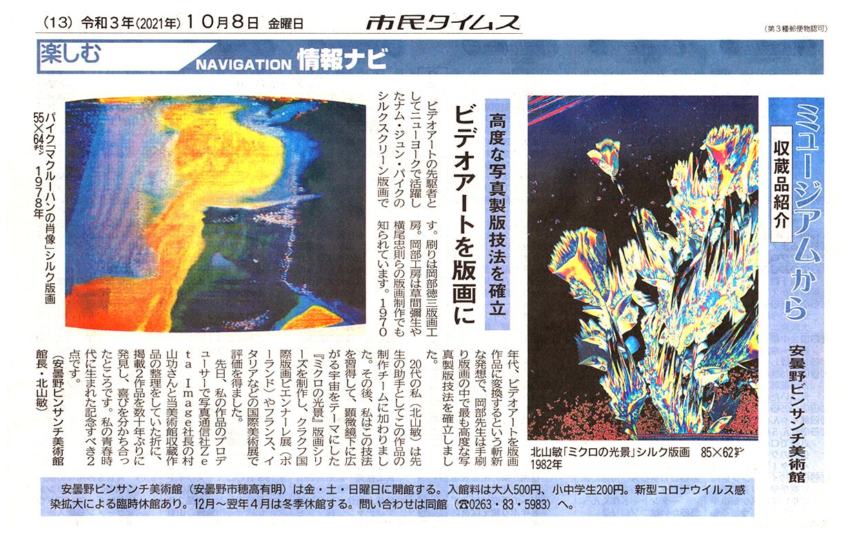 リニュアルオープンしたビンサンチ美術館について、信濃毎日新聞のMGプレスに掲載されました。