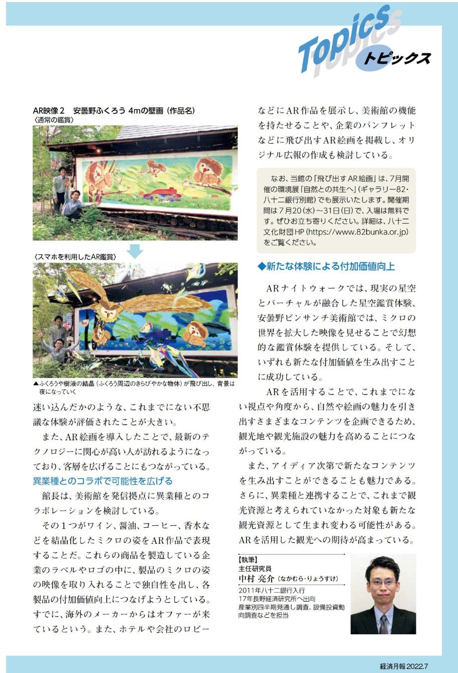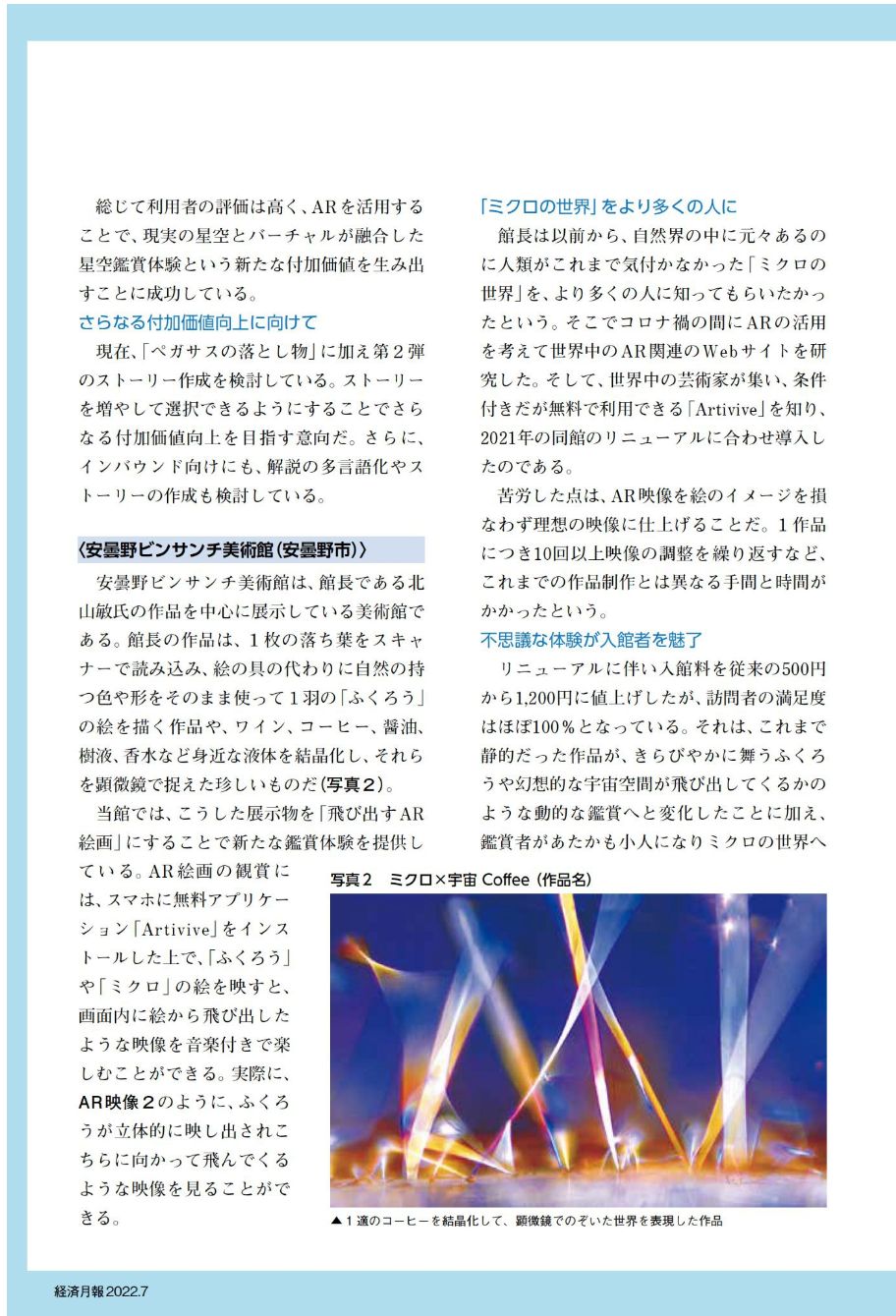 長野経済研究所の『経済月報 』7月号にビンサンチ美術館のARが紹介されました。