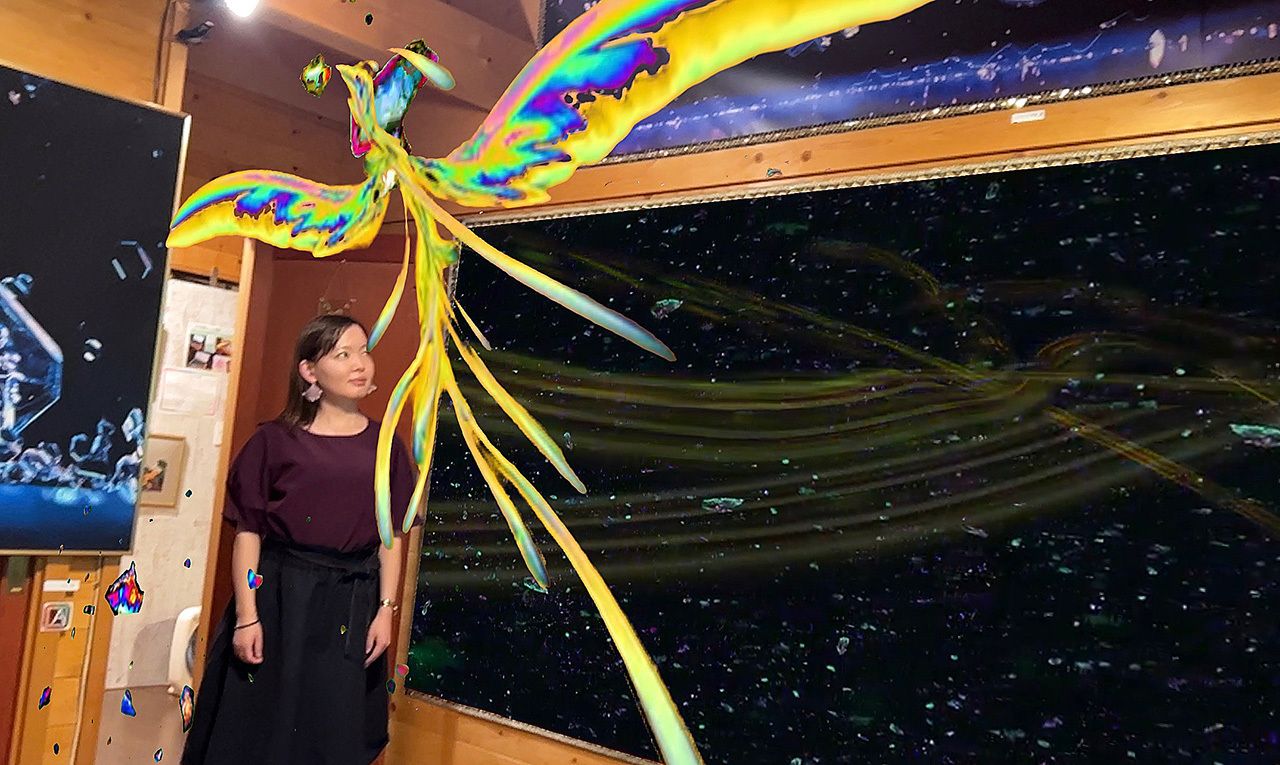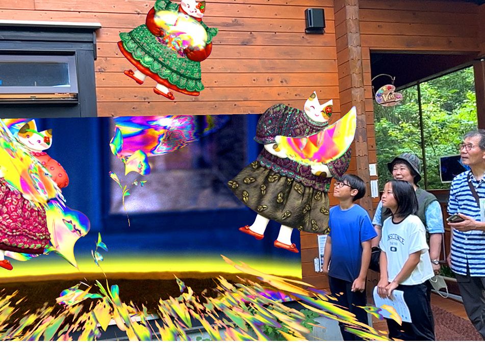 また、作品の横に立つと、AR(拡張現実)のなかに入り込んだような写真を、ご自分のスマホやタブレットで撮ることもできます。
