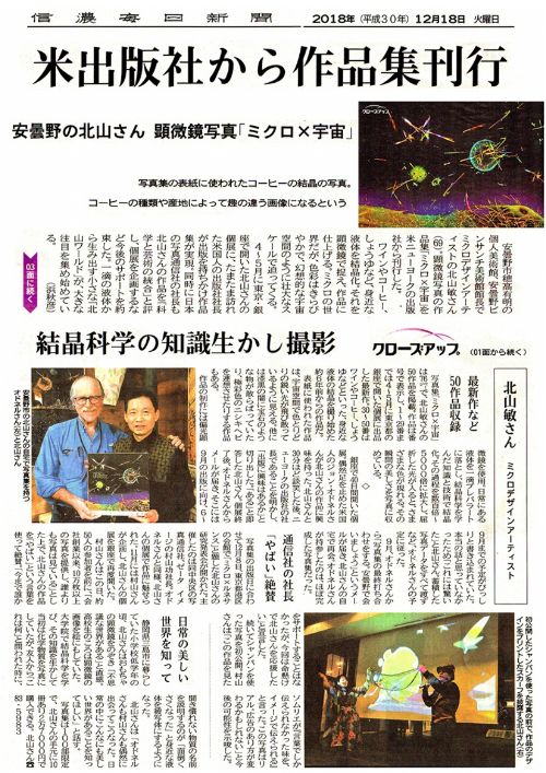 2018年12月ニューヨークから出版された北山敏・顕微鏡写真集「Micro × Universe」がアメリカのamazonから$150で購入できます。世界限定100部です。