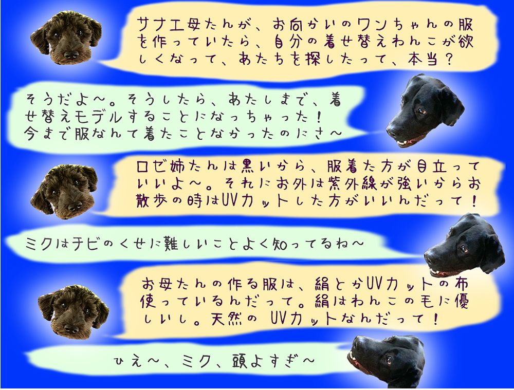 犬たちに優しいハンドメイドのわんこ服の店です。
