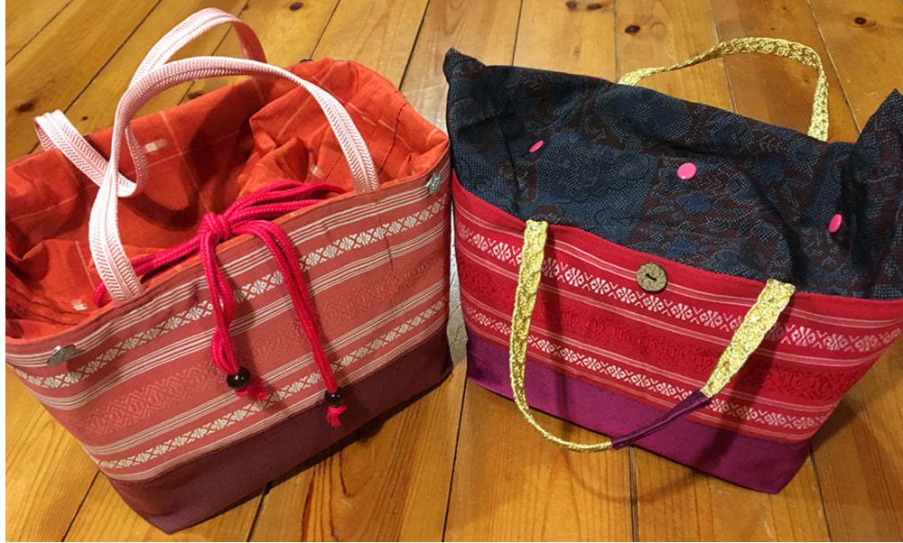 ビンサンチの北山早苗がこれまでに作って来たバッグや着物リメイクの服を、一緒に作ってみませんか?初心者の方でも楽しんで作っていただけるよう、お教えしたいと思います。
